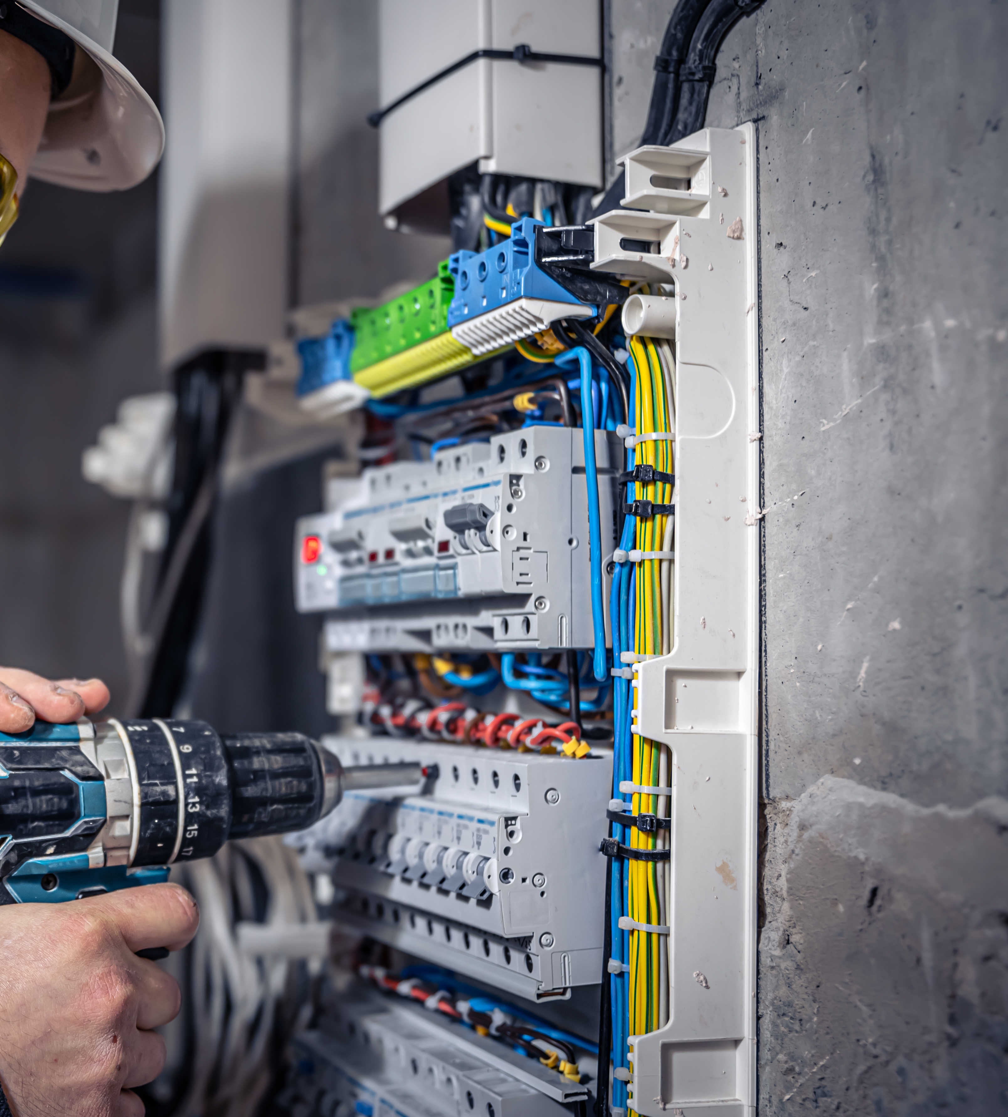 Réalisation de schéma électrique, des tableaux électriques, passage de câble monophasé et triphasé. Protection des circuits, mise à la terre et pose d'éclairage. Pose des circuits prise courant et respect des normes électrique en vigueur.